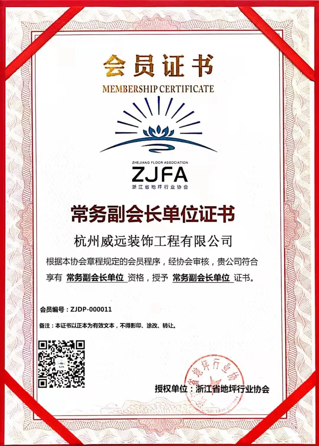 杭州威远装饰工程有限公司感谢浙江省地坪行业协会的认可与肯定,我们将继续砥砺前行,再创辉煌!